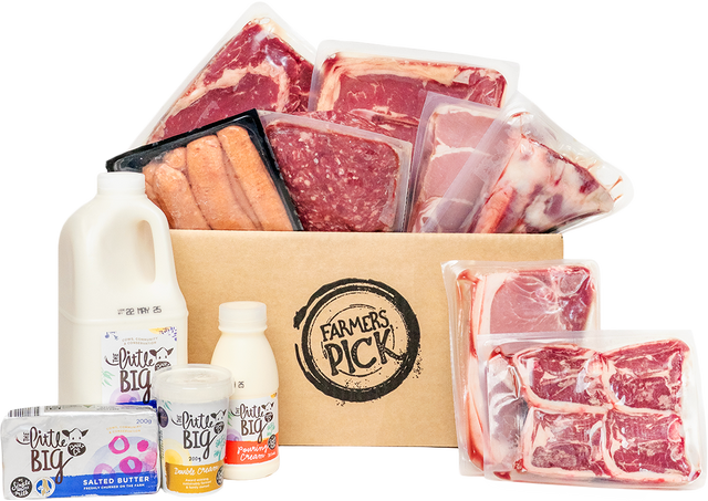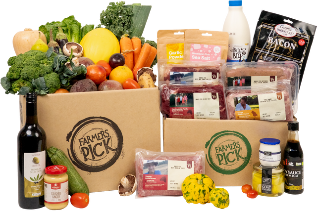 Pick a produce box, a meat, seafood & dairy box, or both!